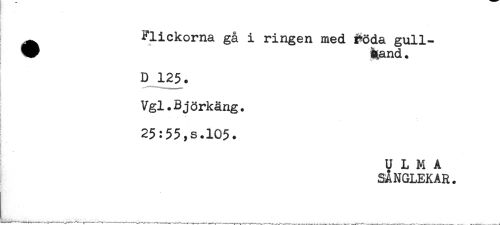//// [ //// Flickorna gå i ringen med !*öda gull- //// W ^and. //// D 125. //// Vgl.Björkäng. //// 25:55,s.105. //// U L M A //// SANGLEKAR. ////