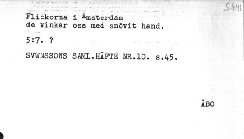 //// ... ' ' ' J> -i - //// - - ' *<. * - . . ' T ... . .......- ... . //// Flickorna i Amsterdam //// de vinkar oss med snövit hand. //// fL.W.^ //// f) + 7 + ? //// ... . //// SWNSSONS SAML.HÄFTE NR. 10. s.45. //// i //// < //// i //// t //// * //// i //// ÅBO ////