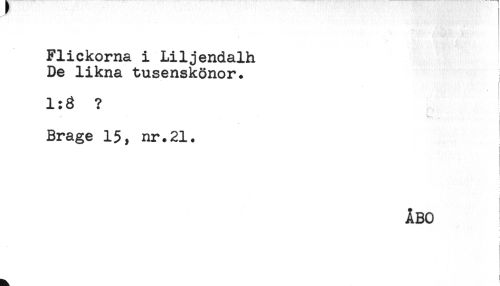 //// Flickorna i Liljendalh //// De likna tusenskönor. //// 1:8 ? //// ^ - . i //// Brage 15, nr.21. //// ÅBO ////