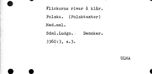 //// Flickorna rivar å klår. //// Polska. (Polskt ext er) //// Med.mel. //// Sdml.Ludgo.J Dencker. //// 3360:3, s.3* //// ULMA ////