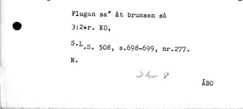 //// Flugan sa* åt brumsen så //// # 3:2+r. KO, //// j //// 50g, s.696-699, nr.277. //// N. //// - .. //// ......^ //// ÅBO ////