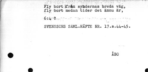 //// I Fly bort}fr&n syhdernas breda våg, //// fly bort medan tider det ännu är, //// i* J ^ - "** ***"' - - ^ -. - ? " , //// ' ' ' '' * <- - //// SVENSSONS SAML.HÄFTE NR. 17.s.44-45. //// . ////