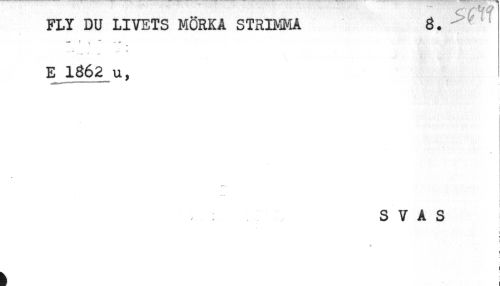 //// FLY DU LIVETS MÖRKA STRIMMA g. //// ta* t ^ ** //// E 1662 u, //// i //// S V A S ////
