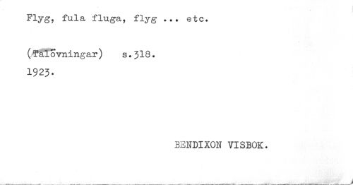 //// Flyg? fula fluga, flyg ... etc. //// (Talövningar) s.318. //// 1923. //// BENDIXON VISBOK. //// _ _ _ __ _ __ ////