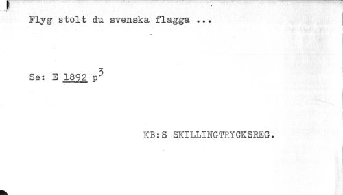 //// Flyg stolt du svenska flagga ... //// * ! //// i //// Se: E 1892 p^ //// . i //// KB:S SKILLINGTRYCKSREG. ////