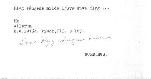 //// Flyg sångens milda ljuva duva flyg ... //// Sk //// Allerum //// E.U.19764. Visor,III. s.187- //// c //// /NORD.MUS. ////