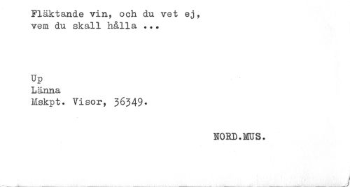 //// Fläktande vin, och du vet ej, //// vem du skall hålla ... //// Up //// Länna //// Mskpt. Visor, 36349. //// NORD.MUS. //// ._ _ __ __ _ _ ^ ////