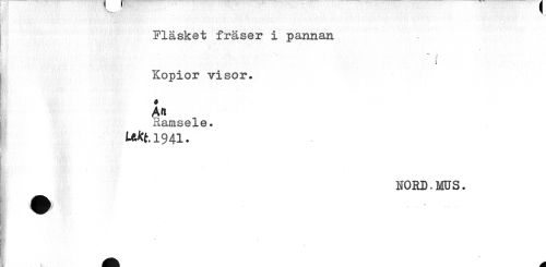 //// - 1 //// Fläsket fräser i pannan //// ] Kopior visor. //// Ramsele. //// t^t.1941. //// NORD,MUS. //// H! //// K ^ ////