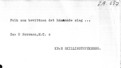 //// Folk som bevittnen det hämmande slag ... //// i //// Se: 0 Norrman,M.C. c //// KB:S SKILLINGTRYCKSREG. //// . //// ! //// i ////