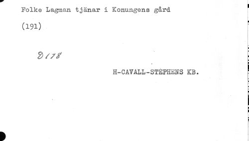 //// Folke Lagman tjänar i Konungens gård * //// (191) //// H //// ! //// H-CATALL-STÉPHENS KB. ' //// B //// p //// g ////