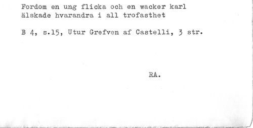 //// Fordom en ung flicka och en wacker karl //// älskade hvarandra i all trofasthet //// B 4? s.15, Utur Grefven af Castelli, 3 str. //// - //// RA. ////