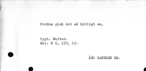 //// 1 //// Fordom gick det så härligt an, //// i //// Uppt. Wefvar. //// Mel. R 192, 12. //// ! //// ! //// ^ ÅBO RANCKEN MS. ////