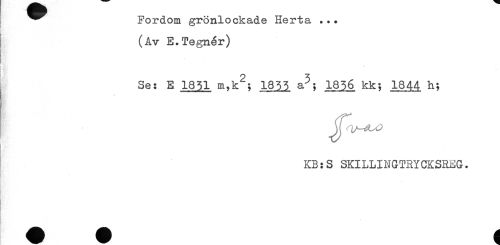 //// ! ^^ Fordom grönlockade Herta ... //// (Av E.Tegnér) //// i //// . //// Se: E 1851 1855 a^; 1856 kk; 1844 h; //// t 'i //// t //// KB:S SKILLINGTRYCKSREG. ////
