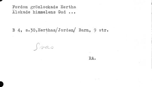 //// Fordom gronlockade Eertha //// Älskade himmelens Gud ... //// B 4? s.30?Eerthas/jorden/ Barn, 9 str. i //// ! //// J ' i //// RA. //// b ////