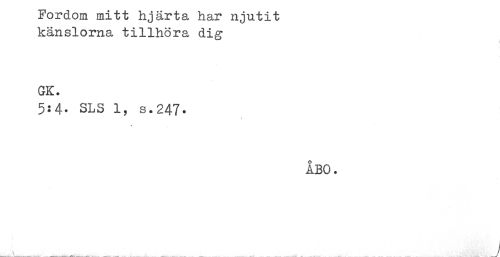 //// Fordom mitt hjärta har njutit //// känslorna tillhöra dig //// GK. //// 5:4. SLS 1, s.247. //// t //// ÅBO. //// ^ , J ////