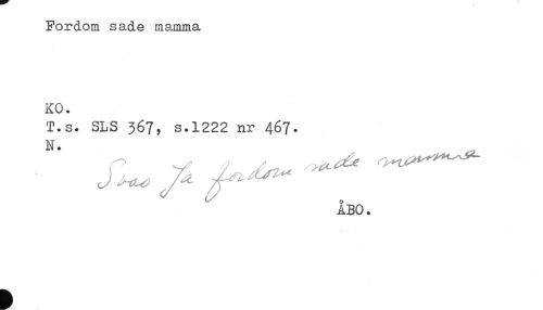 //// Fordom sade mamma //// KO. //// T.s. SLS 367, s.1222 nr 467. //// N. //// ÅBO. ////