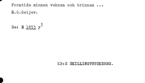 //// Forntida minnen vaknen och "brinnen ... //// E.G.Geijer. //// Se: E 1855 y^ //// KB:S SKILLINGTRYCKSREG. ////
