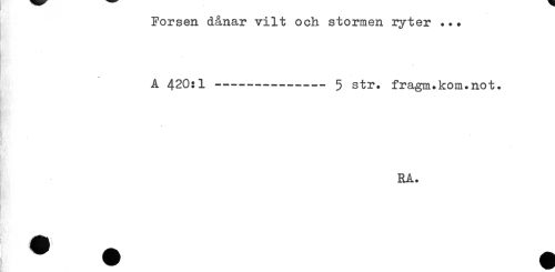 //// Forsen dånar vilt och stormen ryter ... //// A 420:1 ----- 5 str. fragm.kom.not. //// ! //// RA. //// Tr' ////