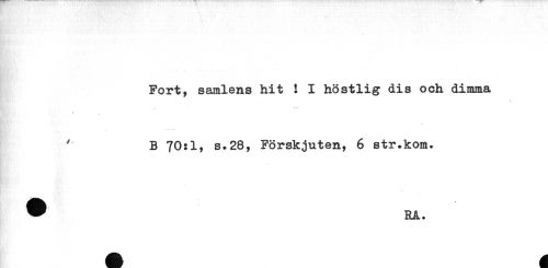 //// Fort, samlens hit ! I höstlig dis och dimma //// .. - < //// ' B 70:1, s.28, Förskjuten, 6 str.kom. //// ^ RA. ////