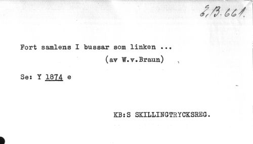 //// Fort samlens I bussar som linken ... //// (av W.v.Braun) //// Se: Y 1874 e //// KB:S SKILLINGTRYCKSREG. ////
