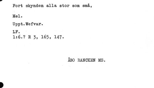 //// Fort skynden alla stor som små, //// Mel. //// Uppt.Wefvar. //// LF. //// 1:6.? R 165, 147- //// ÅBO RANCKEN MS. ////