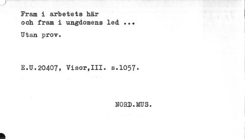//// Fram i arbetets här //// och fram i ungdomens led ..* //// Utan prov. //// ! //// t //// < //// ! //// ' ' ! //// t //// E.U.20407, Visor,III. s.1057. //// i //// NORD.MUS. //// ...... } ////