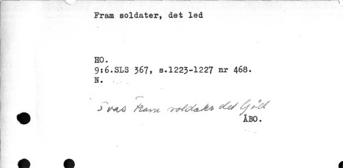 //// Fram soldater, det led //// * //// HO. //// 9:6.SLS 367, s.1223-1227 nr 468. //// N. . //// } * ////