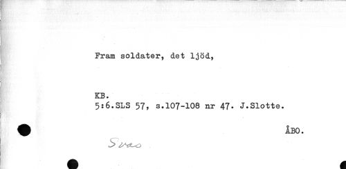 //// Fram soldater, det ljöd, //// ! KB. //// 5:6.SLS 57, s.107-108 nr 47* J.Slotte. //// r //// . //// A ^ ////