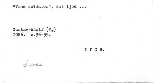 //// "Fram soldater", det ljöd ... //// t //// i //// Gustav-Adolf (Vg) //// 2086. s.36-39. //// < //// I F G H. //// I //// i //// ! //// \ _ __ ^^^...... ' - . ___ ___-.- - ----- .. ..- ----- <- . --*- - ----. ... ^ ////