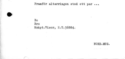 //// Framför altarringen stod ett par ... //// t //// Bo //// Bro //// Mskpt.Visor, E.U.36884. //// ! - //// NORD.MUS. //// C'? //// - //// f - ....- ^ ...... ////