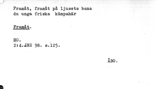 //// Framåt, framåt på ljusets bana //// du unga friska kämpahär //// Framåt. //// HO. //// 2:4.JNE 98. S.125. //// ÅBO. ////