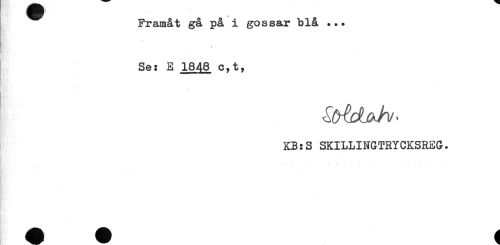 //// Framåt gå på i gossar blå ... //// -* //// Se: E 1848 c,t, //// * //// KB:S SKILLINGTRYCKSREG. ////