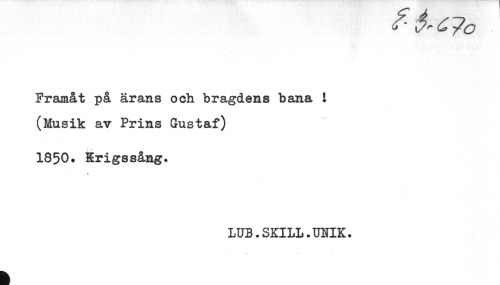 //// Framåt på ärans och bragdens bana ^ //// (Musik av Prins Gustaf) //// 1850. Krigssång. //// LUB.SKILL.UNIK. ////