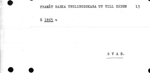 //// FRAMÅT RASKA YNGLINGSSKARA UT TILL HEDEN 13 //// E 1865 u //// *. - ^ //// - //// S V A S. //// -- ----- //// ... //// K ' ' ////