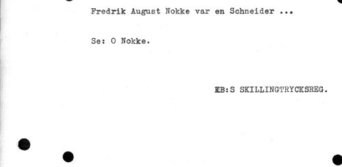 //// Fredrik August Nokke var en Schneider ... //// Se: 0 Nokke. //// * //// < //// KB:S SKILLINGTRYCKSREG. //// f ////