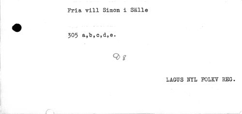 //// Fria vill Simon i Sälle //// 305 a,b,c,d,e. //// ! //// ! //// LAGUS NYL FOLKV REG. ////
