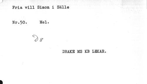 //// Fria vill Simon i Sälle //// Nr.50. Mel. //// DRAKE MS KB LEKAR. ////