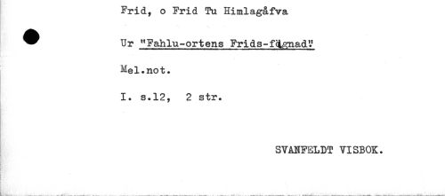 //// Frid, o Frid Tu Himlagåfva //// ^ Ur "Fahlu-ortens Frids-fH^nad? //// Mel.not. //// 1. s.12, 2 str. //// SVANFELBT VISBOK. //// i //// * //// t //// T //// Qrfn ;; ////