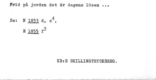 //// Frid på jorden det är dagens lösen ... //// Se: N 1855 d, c t //// E 1855 f^ //// KB:S SKILLINGTRYCKSREG. ////