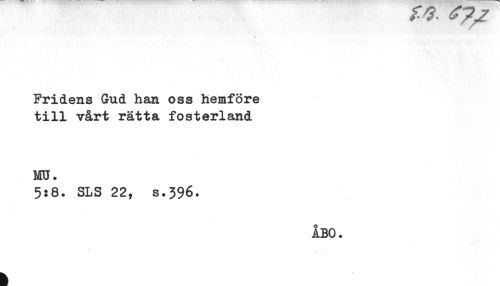 //// Fridens Gud han oss hemföre //// till vårt rätta fosterland //// nu. //// 5:8. SLS 22, s.396. ////