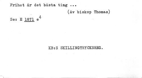 //// Frihet är det bästa ting ... //// (Av biskop Thomas) //// Se: E 1871 e^ //// KB:S SKILLINGTRYCKSREG. ////