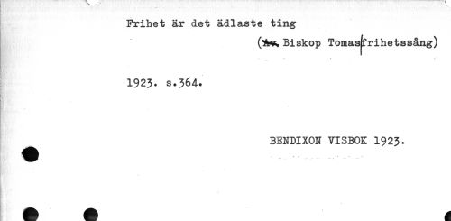 //// Frihet ar det ädlaste ting //// Biskop Tomas^rihetssång) //// 1923. s.364. //// tHf //// BENDIXON VISBOK I923. ////