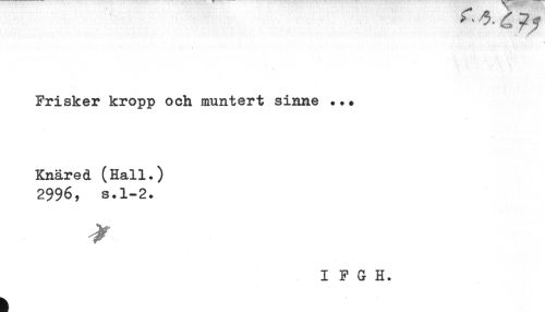 //// \ //// Frisker kropp och muntert sinne ... //// Knäred (Hall.) //// 2996, s.1-2. ////