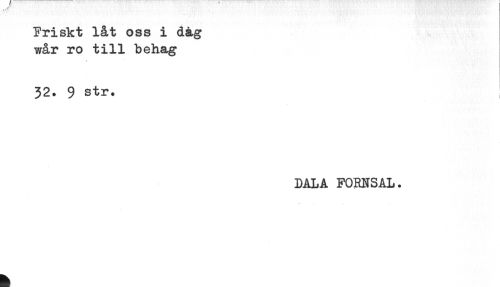 //// Friskt låt oss i dag //// wår ro till behag //// 32. 9 str. //// DALA FORNSAL. ////