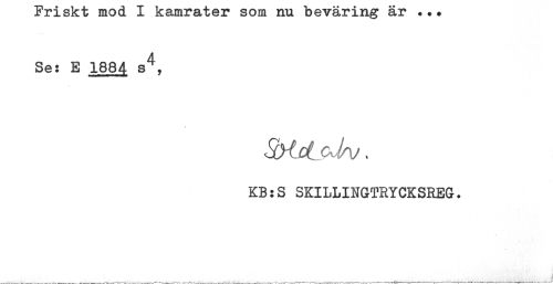//// Friskt mod i kamrater som nu beväring ar ... //// Se: E 1884 s^, //// s //// KB:S SKILLINGTRYCKSREG. //// ___^ ^ ____ _____ J ////