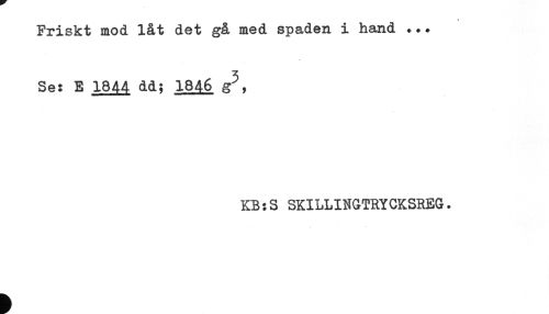 //// Friskt mod låt det gå med spaden i hand ... //// Se: E 1844 dd; 1846 g^, //// KB:S SKILLINGTRYCKSREG. ////