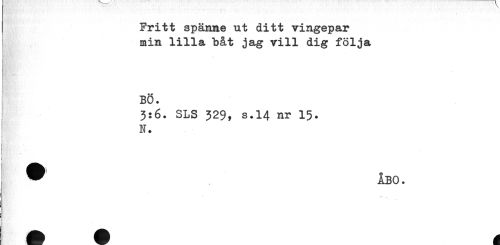 //// \ //// Fritt spänne ut ditt vingepar //// min lilla båt jag vill dig följa //// . //// BÖ. //// 3:6. SLS 329, s.14 nr 15. //// N. //// t //// ^ ÅBO. //// t //// i //// ! ////