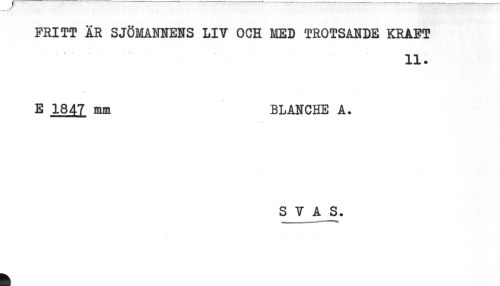 //// FRITT ÄR SJÖMANNENS LIV OCH MED TROTSANDE KRAET //// 11. //// B 1847 mm BLANCHE A. //// t * //// S_V A Si. ////