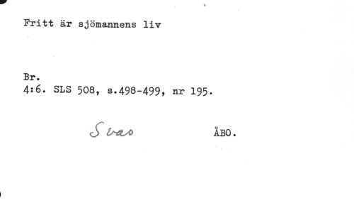 //// Fritt är sjömannens liv //// Br. //// 4:6. SLS 508, s.498-499, nr 195. //// ÅBO. ////