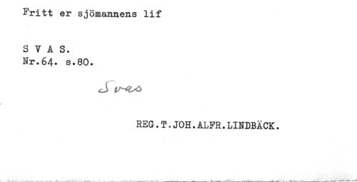 //// Fritt er sjömannens lif //// S V A S. //// Nr.64. s.80. //// <J //// REG.T.JOH.ALFR.LINDBÄCK. ////
